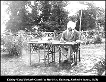 ਭਾਈ ਵੀਰ ਸਿੰਘ ਕਸ਼ਮੀਰ ਵਿਚ ਸੂਰਜ ਪ੍ਰਕਾਸ਼ ਦਾ ਸੰਪਾਦਨ ਕਰਦੇ ਹੋਏ, 1928।